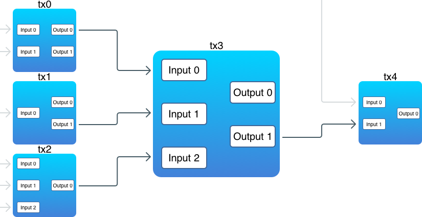 input 2 :来自了tx2的output0,花费了这个tx2.output0.
